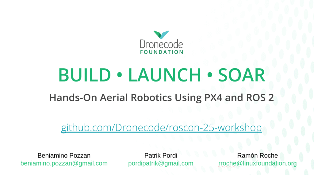 Patrik attended ROSCon in Singapore where he, Beniamino Pozzan, and Ramon Roche ran the Hands-On Aerial Robotics Using PX4 and ROS 2 workshop.